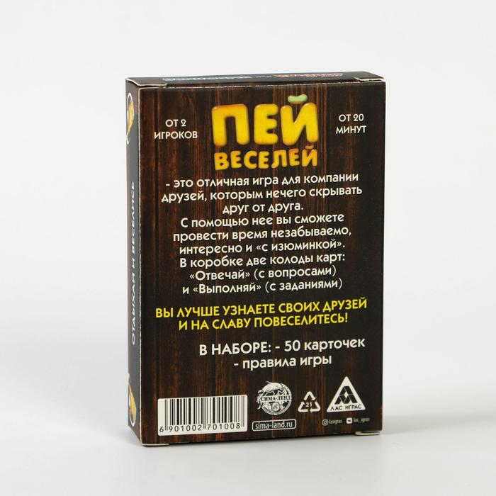 Купить игра для компании "пей веселей" 50 карт от 180 руб. с доставкой до пункта выдачи в Болхове. Интернет магазин ДекаМаркет. Оплата при получении.